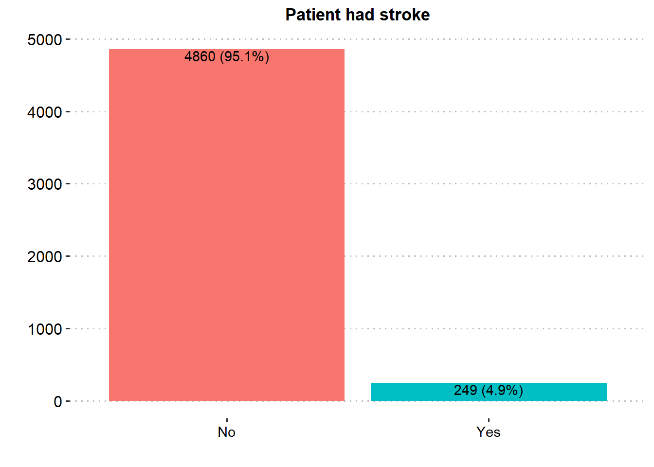 ## $ stroke : num [1:5110] 1 1 1 1 1 1 1 1 1 1 ...