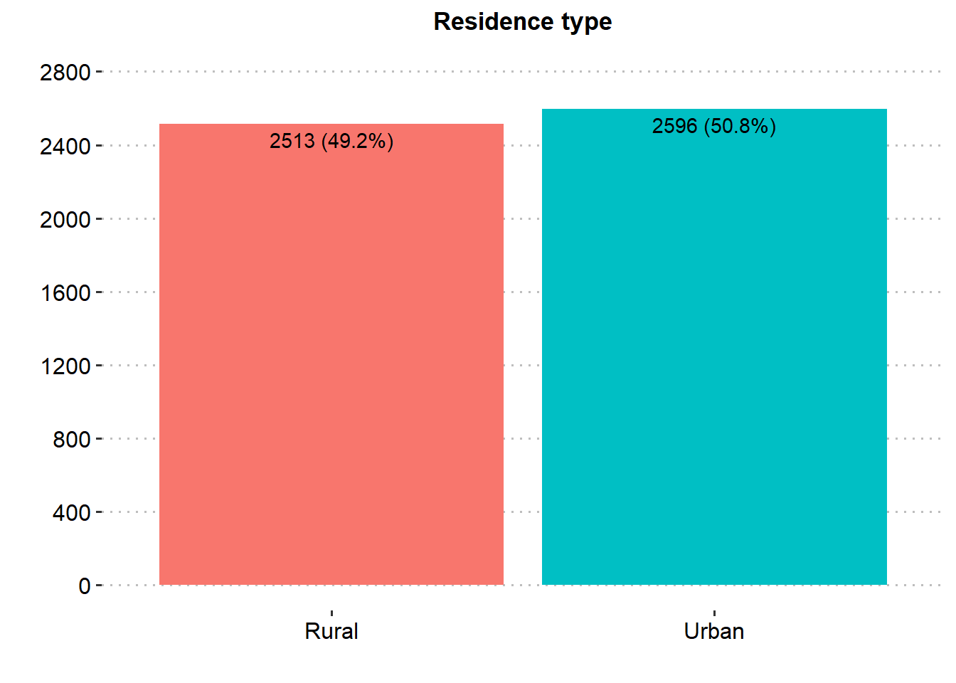 ## $ residence_type : chr [1:5110] "Urban" "Rural" "Rural" "Urban" ...