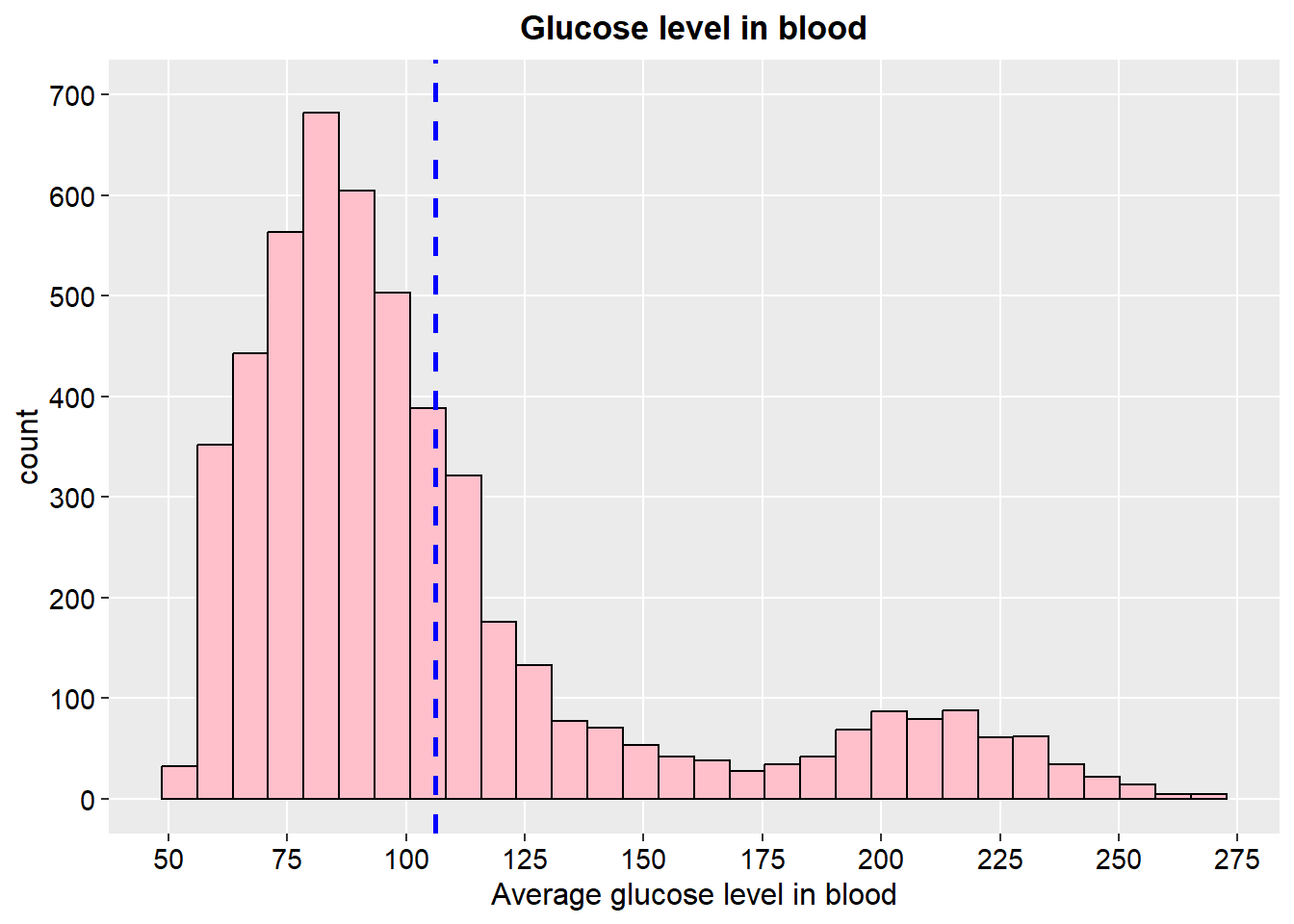 ## $ avg_glucose_level: num [1:5110] 229 202 106 171 174 ...