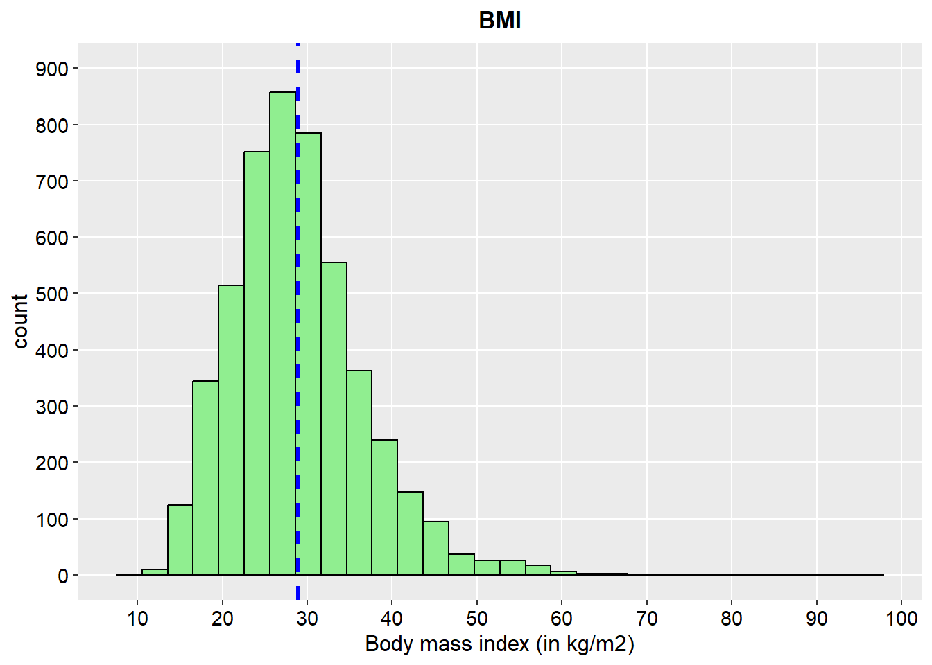 ## $ bmi : num [1:5110] 36.6 NA 32.5 34.4 24 29 27.4 22.8 NA 24.2 ...