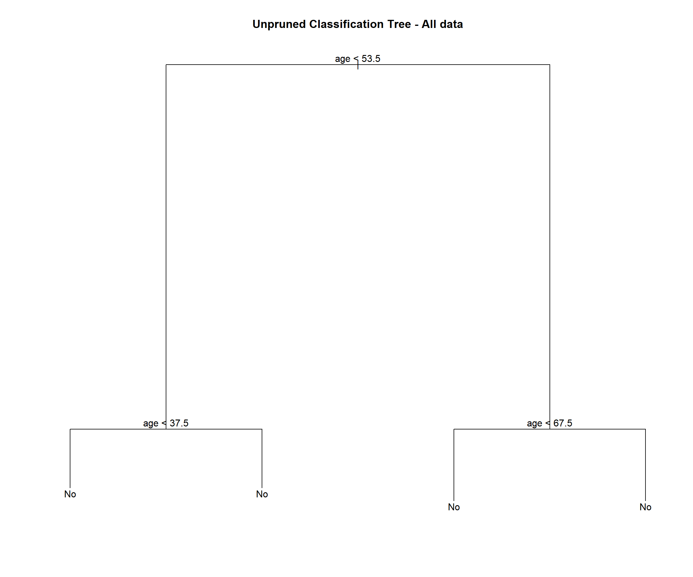 We use prune.misclass() to obtain that tree from our selected tree, and plot this smaller tree.