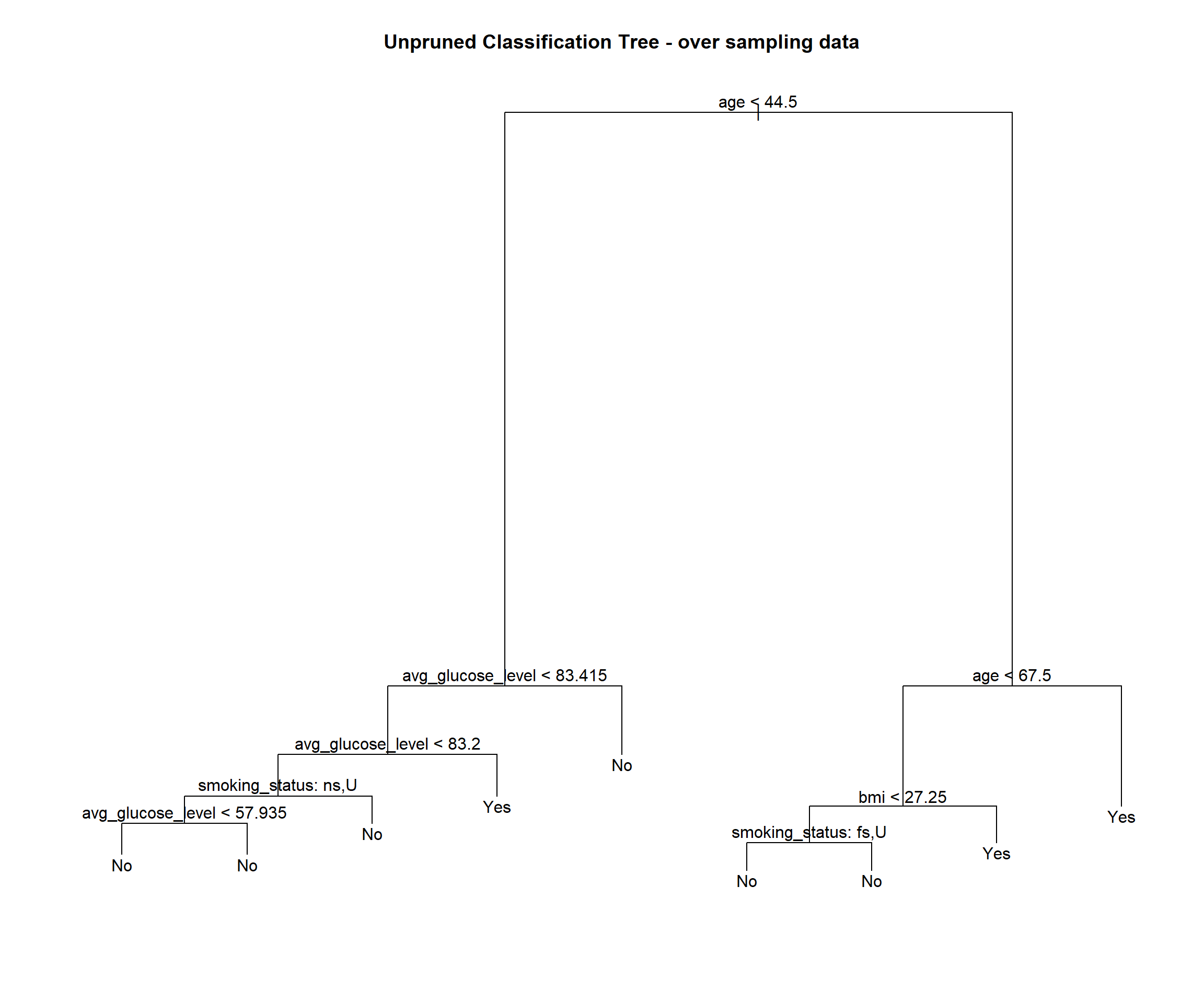 Here it is easy to see that the tree is a better fit than the unbalanced train model but not a better fit than over sampled (greater accuracy) and under sampled models(greater accuracy).